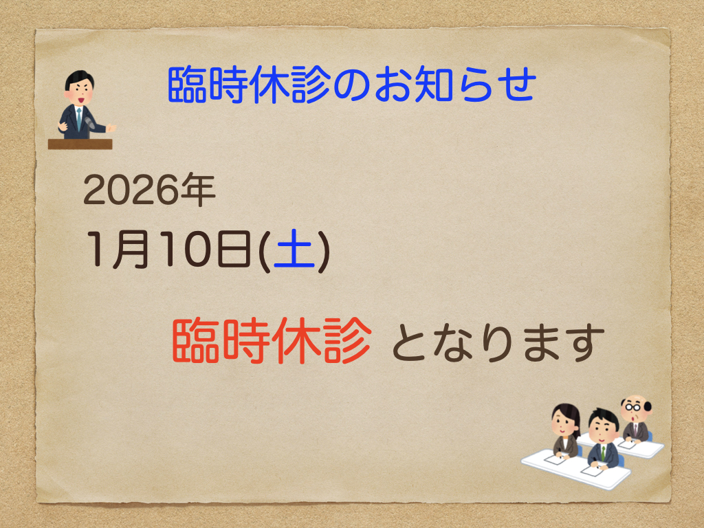 2026年1月10日は所用のため臨時休診となります。よろしくお願いします。